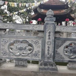 Phần thân lan can: thân lan can tường bao đá chính là những tấm bưng đá liền khối hoặc các con song tiện bằng đá với những hoa văn phong thuỷ đẹp.